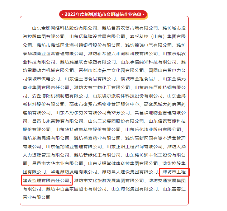 喜報(bào)│公司榮獲“2023年度濰坊市文明誠(chéng)信企業(yè)”